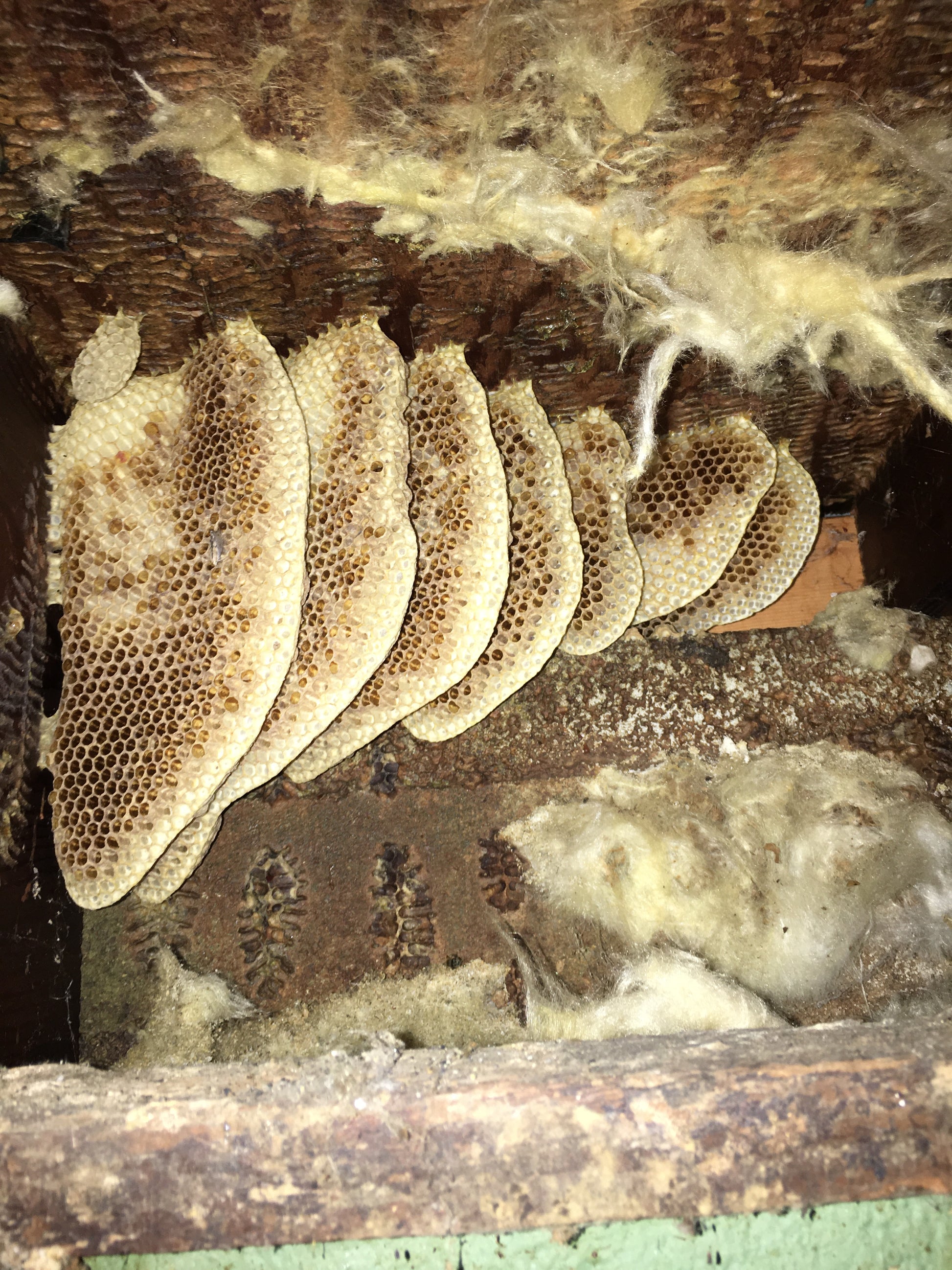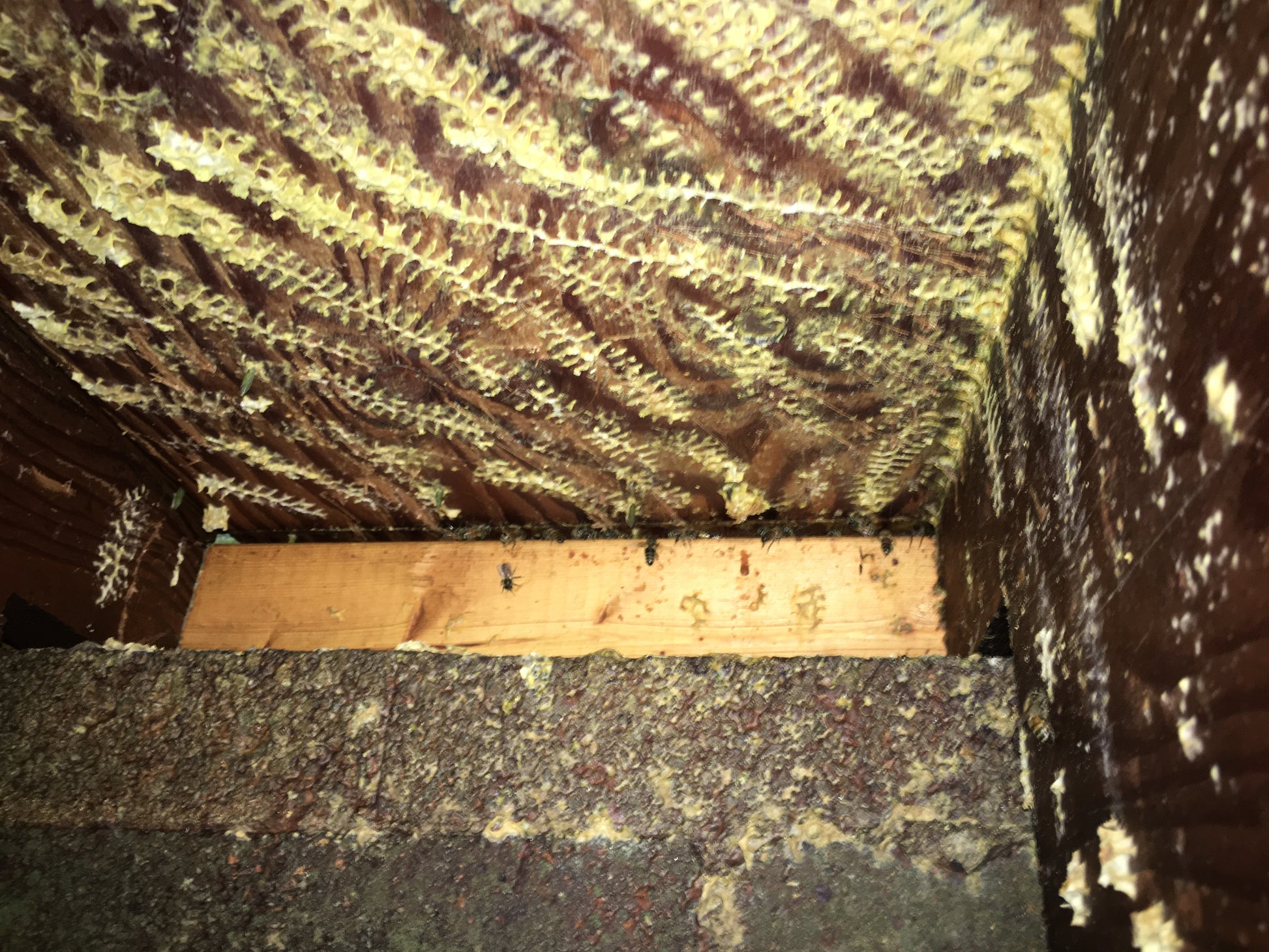 - Prevention: After removal, it’s essential to treat the area with a product like Kilz to seal odors and then insulate it with fiberglass insulation (pink) to prevent future infestations. Do not use foam or paper insulation—bees can chew through these materials.